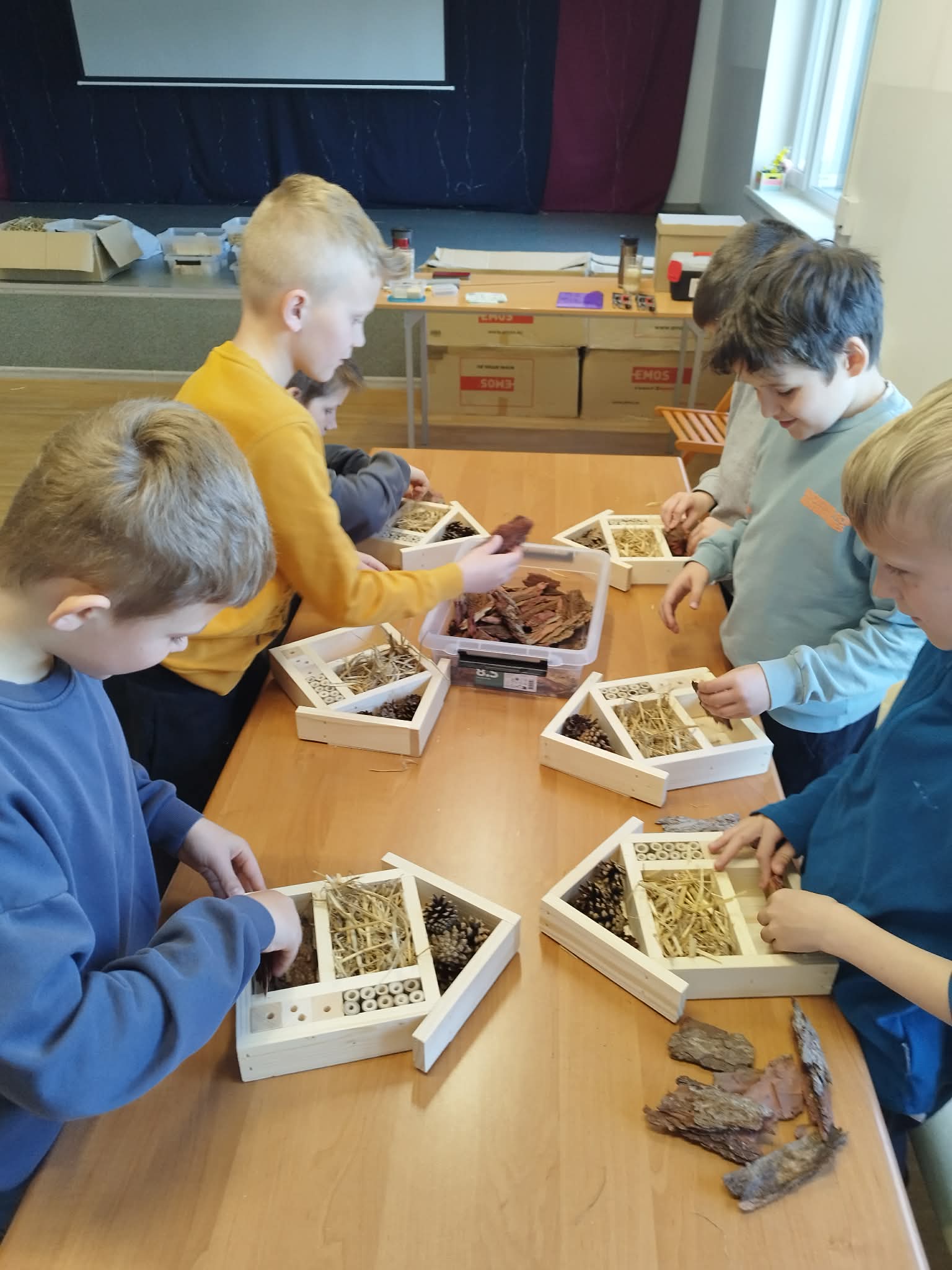 W piątek, 10 kwietnia, odbyły się warsztaty tworzenia domków dla owadów, w których uczestniczyli uczniowie klas 1–3.